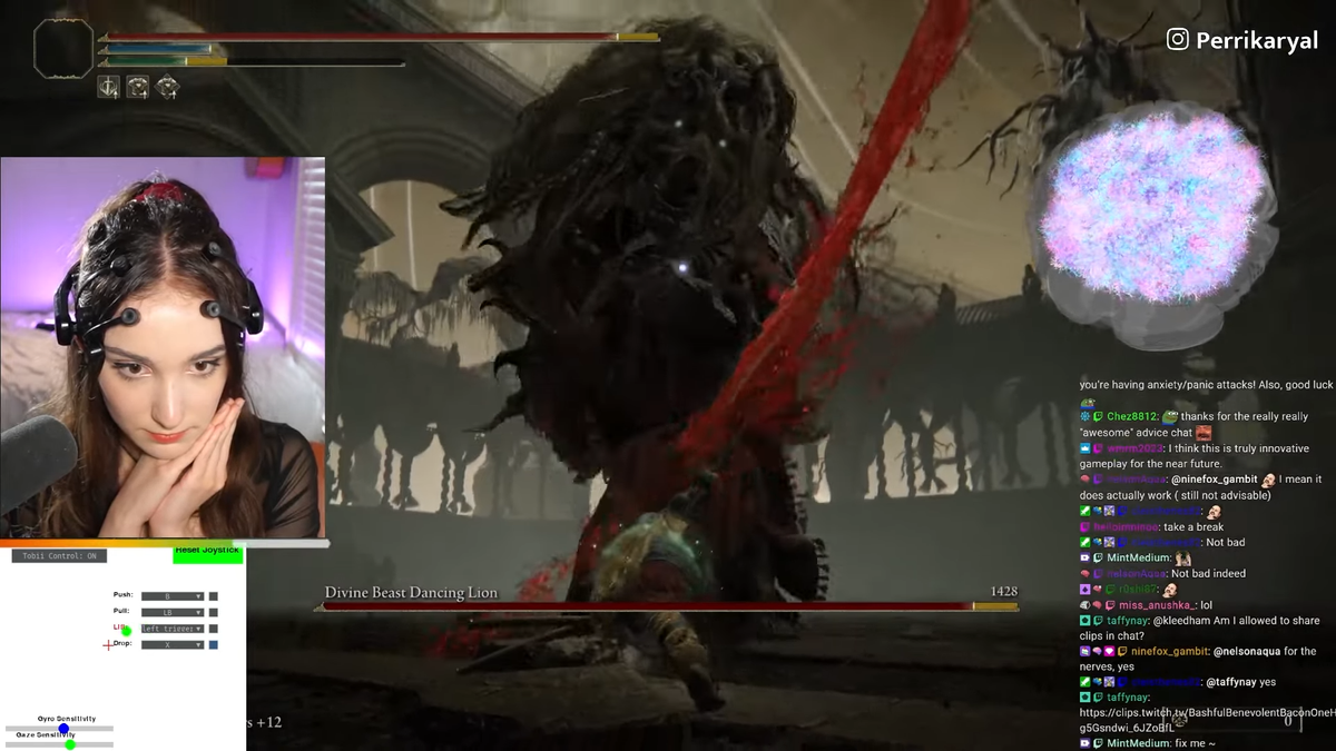 PerriKaryal is a tech creator on Twitch with a Master’s degree in psychology, and she ain’t afraid to use it. Her latest headlining project is a largely hands-free control scheme using an EEG. The brain cap detects distinct peaks of brain activity, which the streamer’s brain-computer-interface coding then interprets as gamepad inputs. So, yes, of course, she’s used it to beat multiple Elden Ring bosses in ‘mind control’ challenge runs.