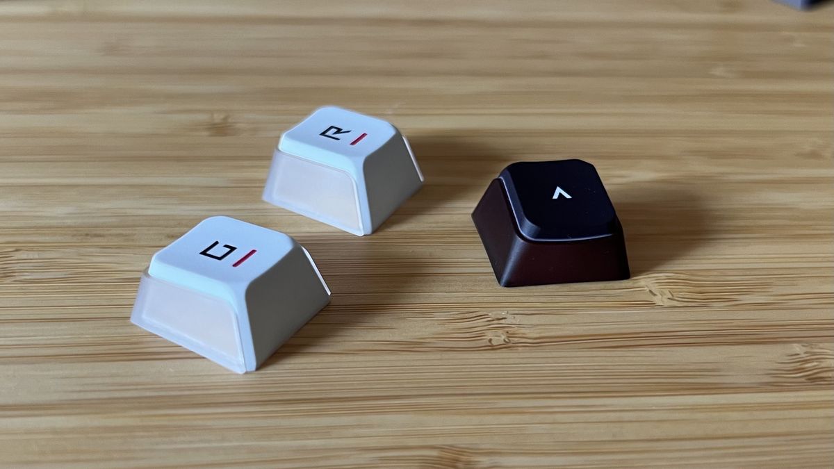 Now we have the Asus ROG Azoth X. Where the original stuck to a slick black and gray aesthetic the new model goes all out with a crisp white chassis and super fun space-themed keycaps. It’s the opposite of its cool, calm, and collected predecessor – this deck screams its power as loud as possible.