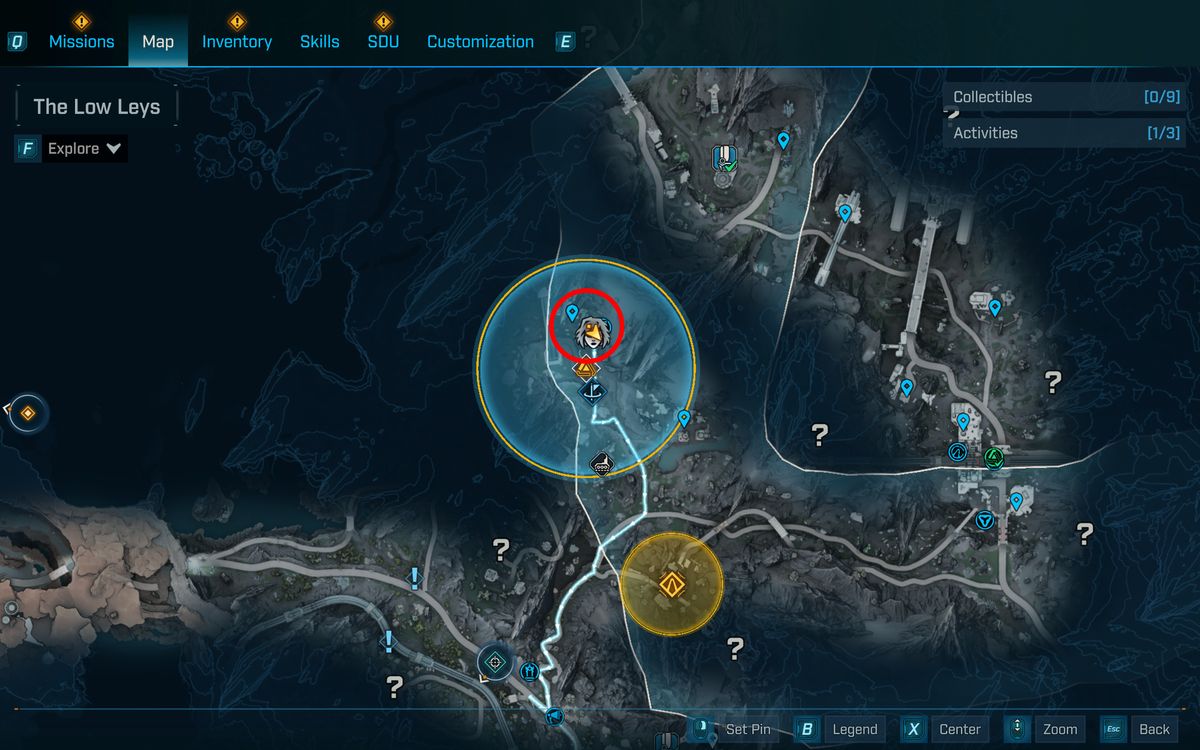 This fragment is in the centre of the L-shaped Low Leys region by The Pit point of interest, north of the Eureka Stane crawler activity, and just east of the entrance from Carcadia Burn.