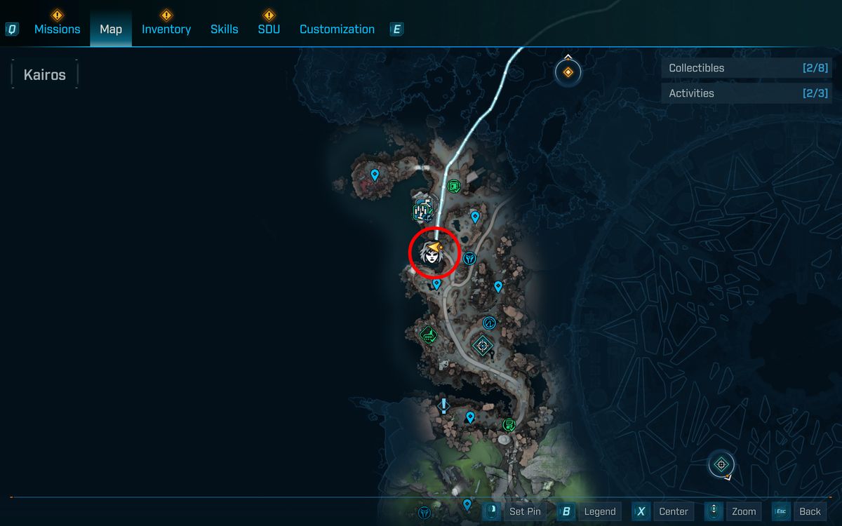 This one’s on a pedestal in a small cave on the northeast side of The Launch Pad (but southwest of Ardor’s Bounty). There are odd-shaped pillars nearby, so it’s easy enough to spot if you’re heading north up the main road from the settlement.