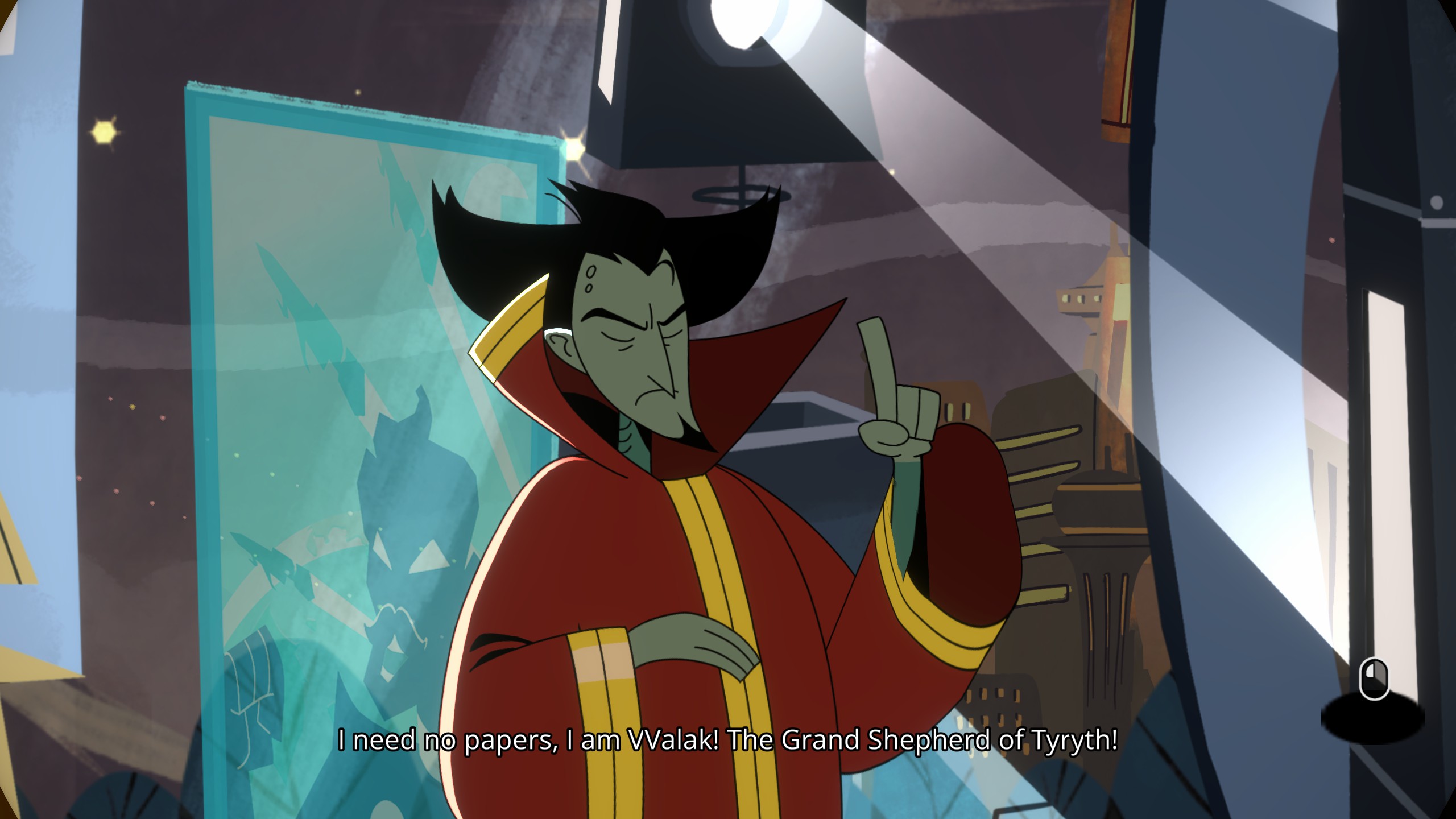 Puzzles and story are the keys in a game like this, so how were the puzzles overall? Solid. Adventure games like this have a problem these days where it feels like they’ve hit a wall in terms of gameplay evolution and puzzle design. I’ve discussed this before and don’t really hold it against them anymore because, honestly, I don’t know where the genre can go from here either. There were a couple of standout moments, mostly based around VValak weedling his way through situations using speech, while the rest were all rock-solid, classic examples of point-and-click adventure design.