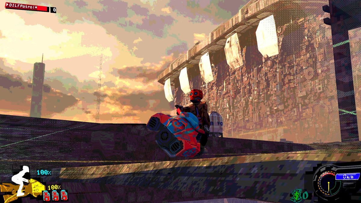 But Airframe Ultra is not a shooter, it’s a hoverbike racing game with a ton of weird, neat quirks and complexity under the hood. You can dismount your bike at any time, trading its smooth, confident movement for your little biker dude’s deliberately weighty, QWOP-y shuffle.
