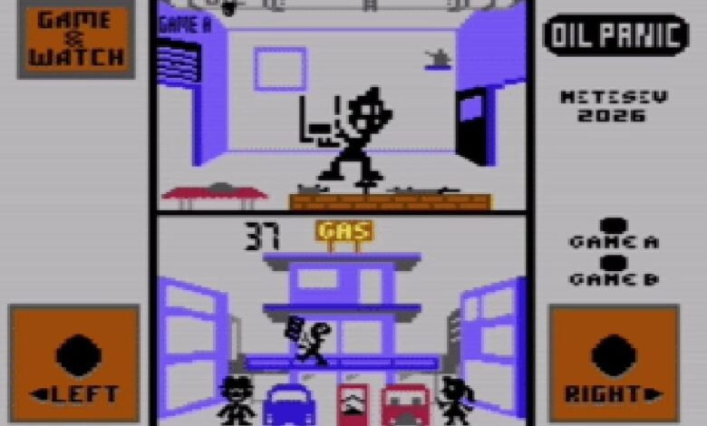 It has been some time since we’ve featured a Game & Watch game, previous ones we’ve mentioned such as Kong, Parachute and Octopus 21. But here we are with a new game called ‘Oil Panic’ for the Commodore 64 by Metesev. A game in which the creator says is ” A C64 tribute to the dual-screen LCD classics, your mission is simple: Catch the oil. Fill the drum. Don’t soak the customers.” To coincide with this news, provided below is the latest footage.