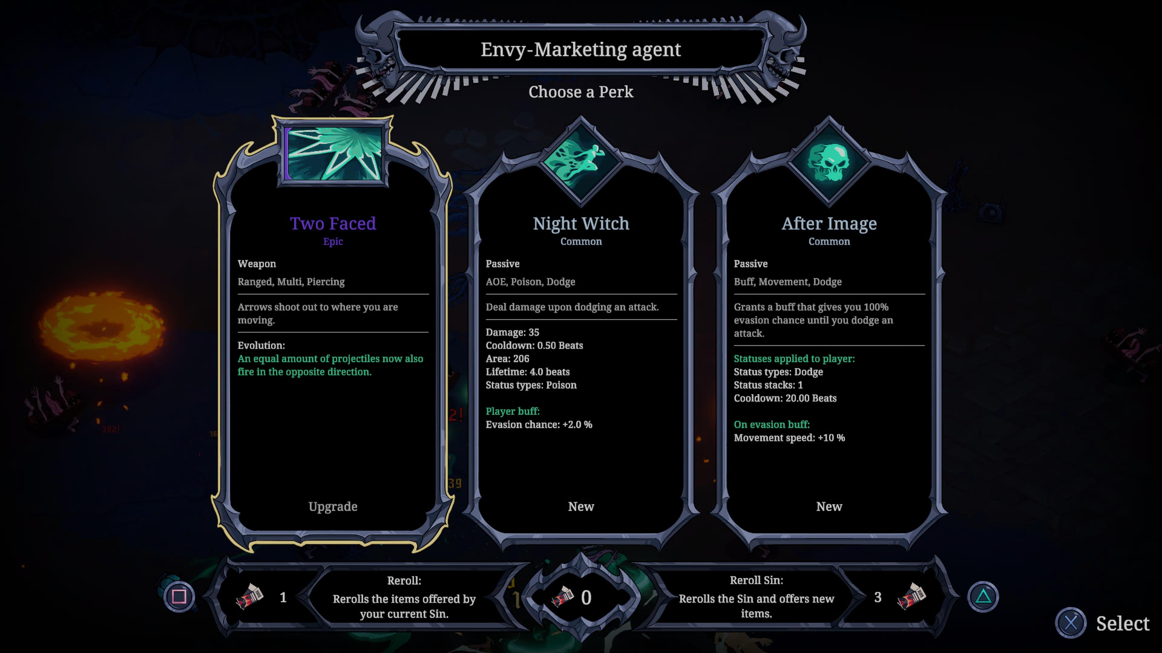 Again, comparing to Hades‘ Gods, the Sins don’t have as much depth to them because you don’t get to slowly uncover more and more about them, but their visual designs and the gifts they offer at least give them some personality.