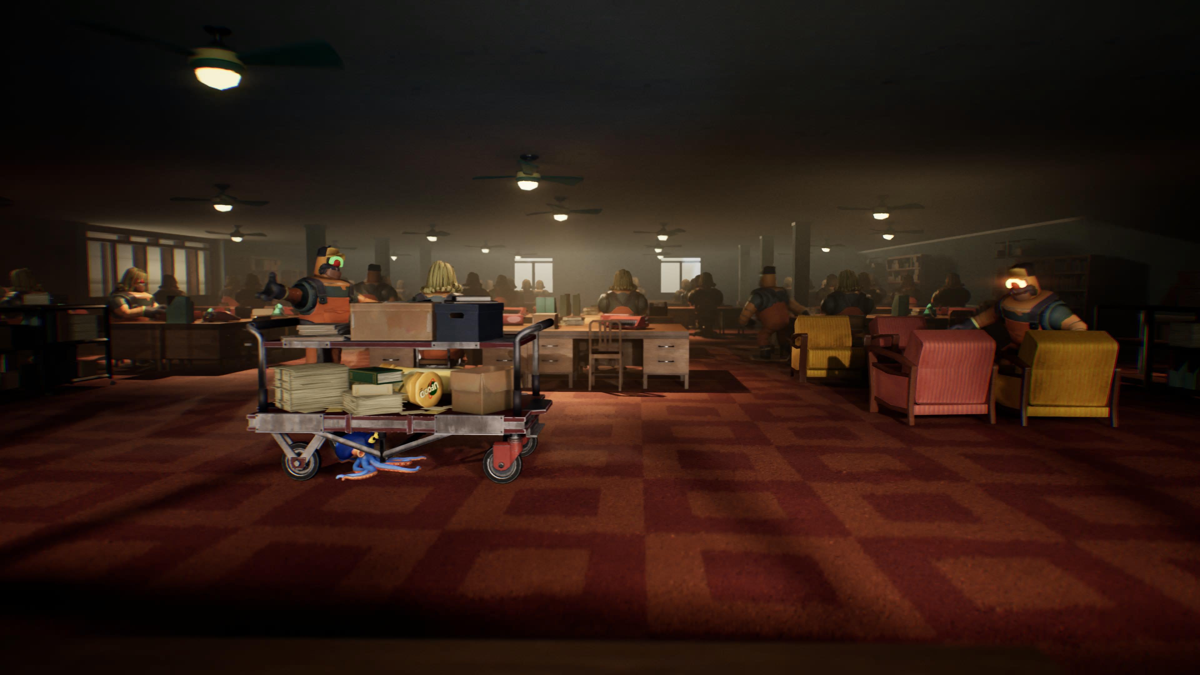 And… is that a Metal Gear Solid sound effect when Darwin gets spotted? Nice little nod, given that Konami is publishing. The rest of the gameplay fares better. Sometimes you’re escaping Steve the Seagull in a cinematic set-piece involving collapsing structures, other times you’re dunking yourself in strange ooze to ward off swarms of aggressive rats. There’s a solid variety of stuff on offer, all of it made more enjoyable thanks to the goofy visuals, especially the Ratchet & Clank-esque NPCs roaming around.