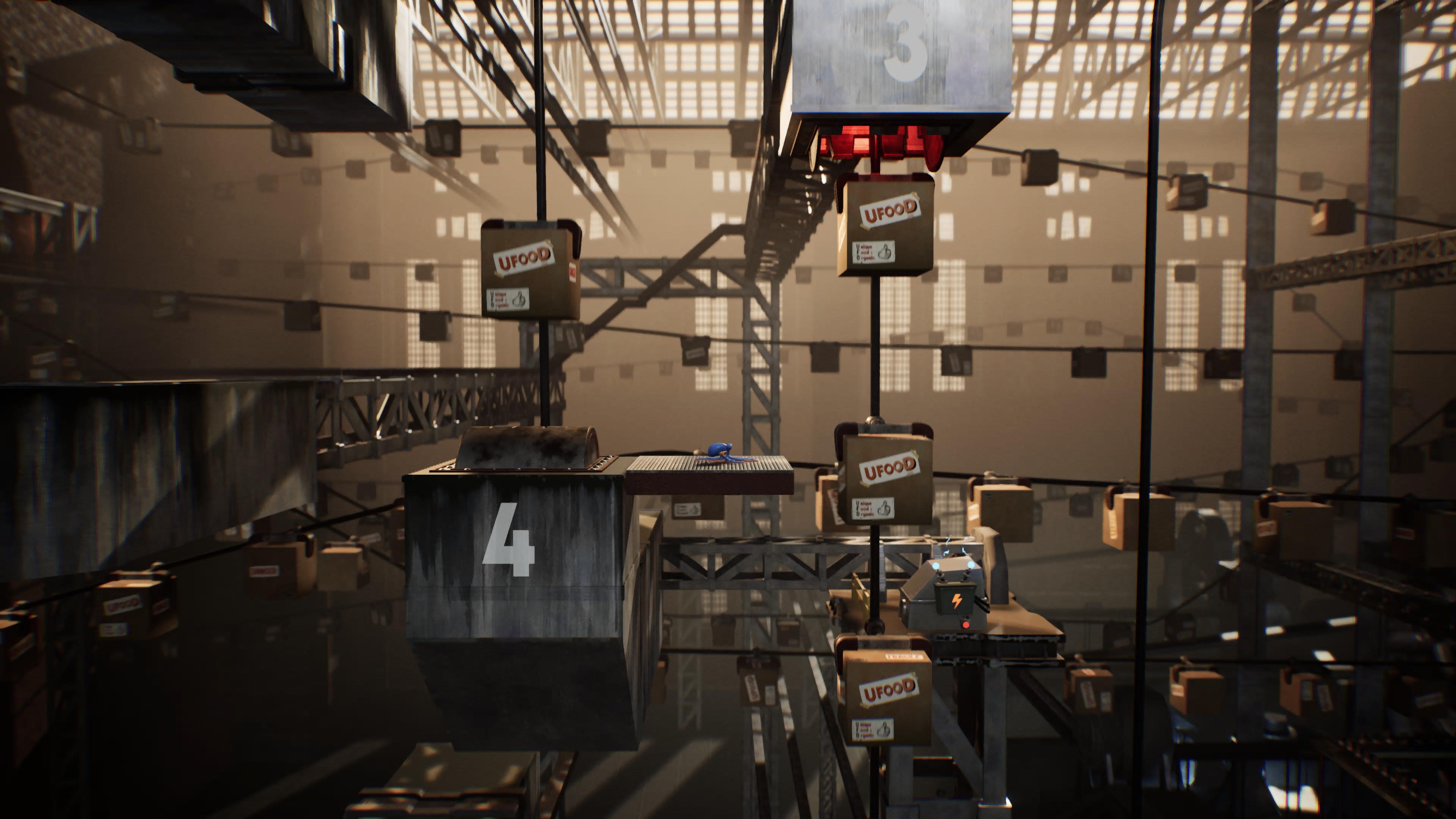 The platforming handles well in these moments. It’s satisfying to crawl along surfaces, even if Darwin can feel a little too sticky in tighter spaces. While the game occasionally flirts with precision platforming without quite having the tight controls to support it, most of the time it’s enjoyable to manoeuvre Darwin through hazards like scorching pipes, giant cogs, and unsuspecting workers below.